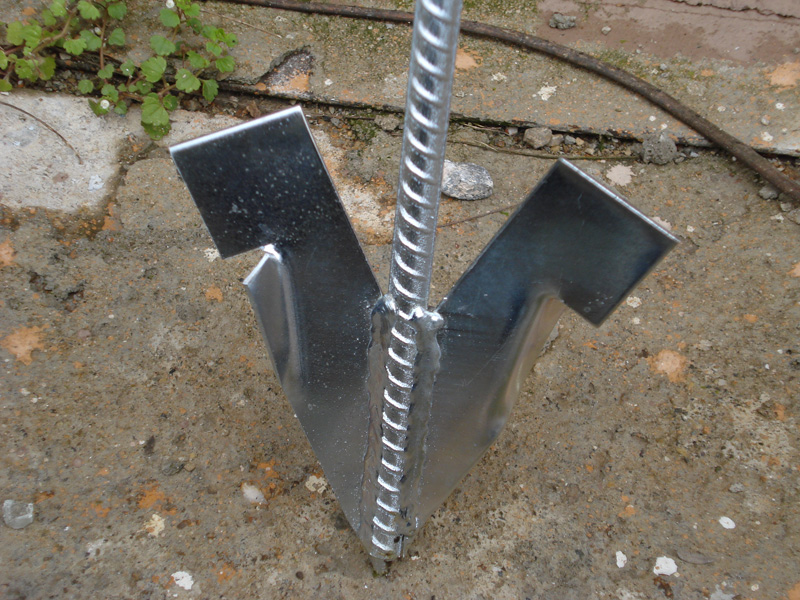 Çakma tip toprak çapası gövdesinde en az 10mm nervürlü çelik hammadde üzerine kanatlı çentik formu verilmiş, 2mm saç kalınlığında malzeme kullanılarak gaz altı kaynağı ile birleştirilmektedir. Paslanmalara karşı çinko ile kaplanmaktadır. Siparişe göre sıcak daldırma galvaniz ile de üretim yapılabilmektedir.
